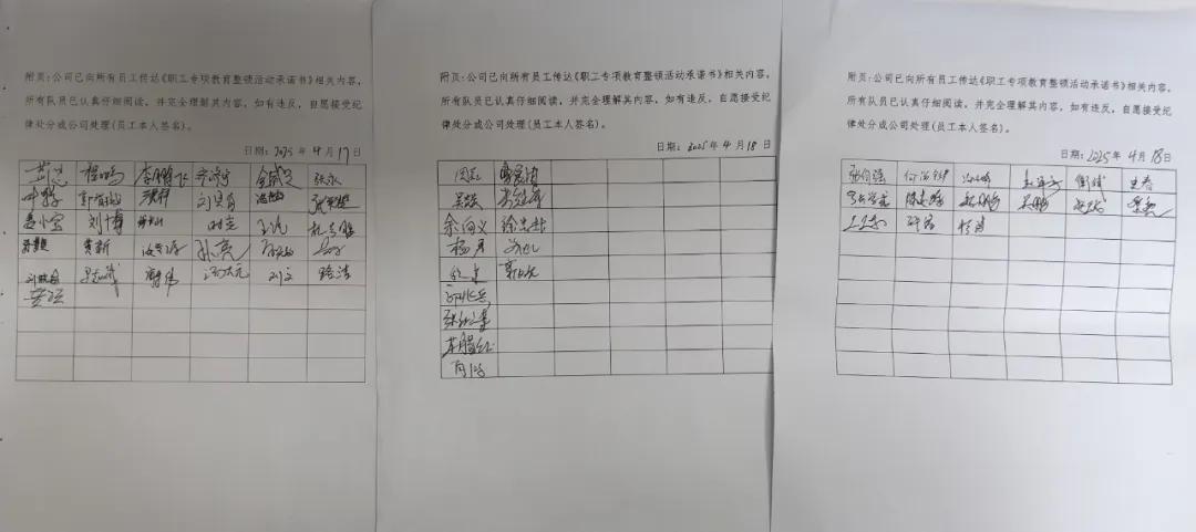 公司組織全體人員簽署《職工專項教育整頓活動承諾書》,健全動態(tài)監(jiān)管制度,把報備、提醒、監(jiān)督等工作做扎實。同時,建立“單位+家庭”雙監(jiān)督機制,充分發(fā)揮“八小時外”的家庭監(jiān)督作用,做到家屬常問常提醒,形成全天候監(jiān)督管理閉環(huán)。