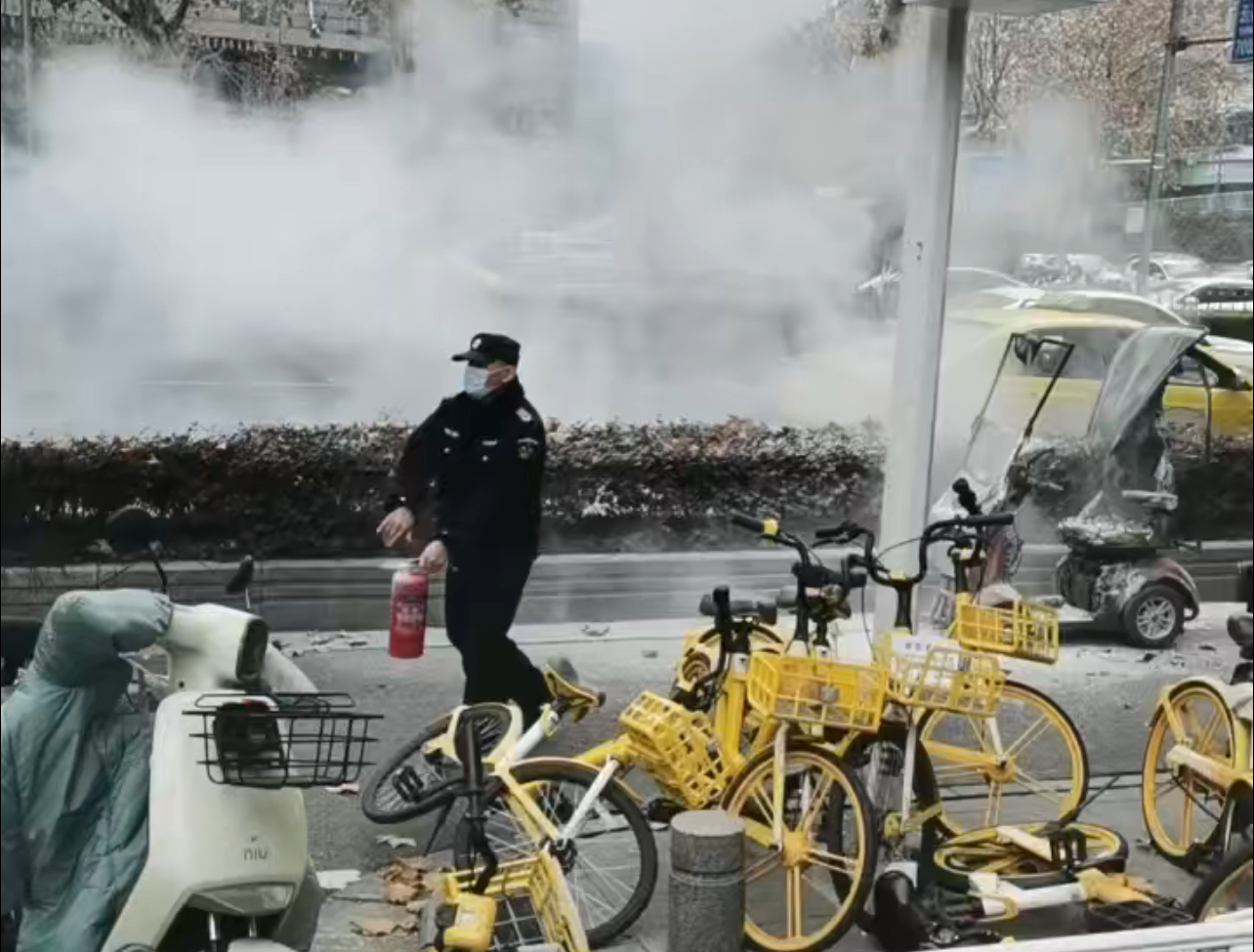 電動(dòng)車突發(fā)自燃 南京市保安服務(wù)有限公司玄武分公司保安員火速撲救化險(xiǎn)為夷